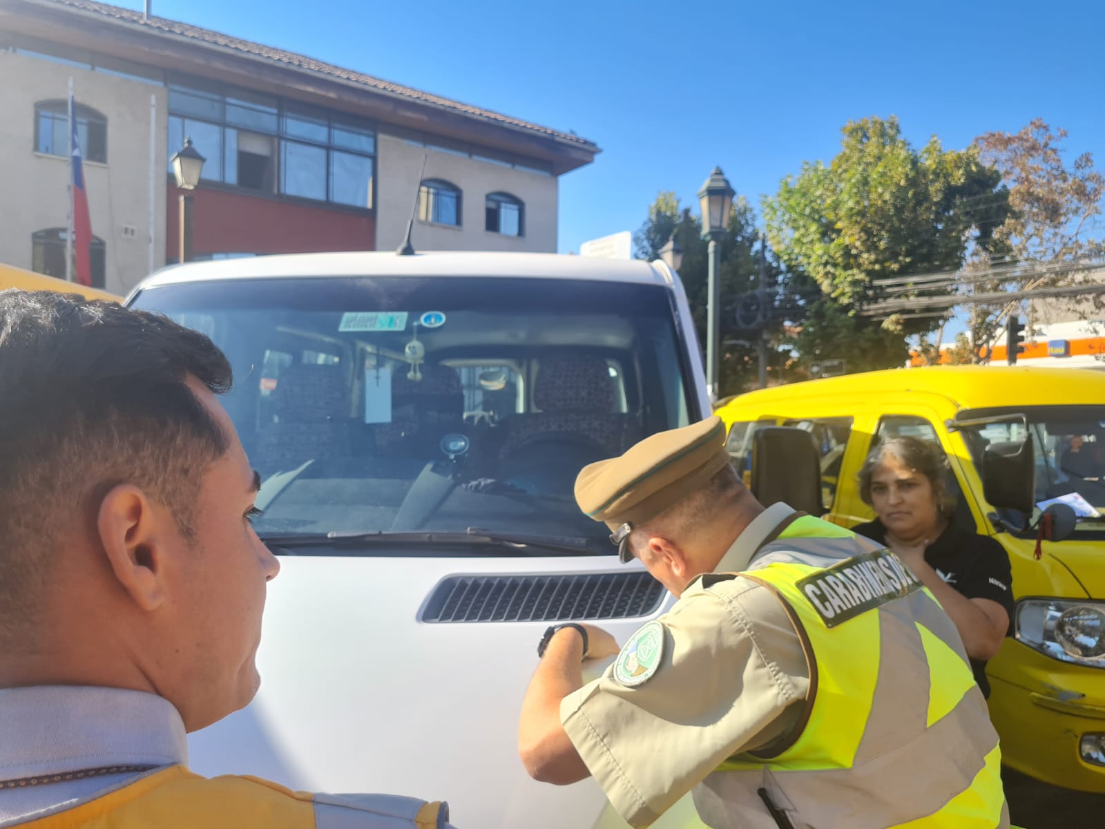En un trabajo colaborativo entre la Subsecretaria de Transporte, nuestra Dirección de Inspecciones y Carabineros, esta mañana se reunieron, en nuestra Plaza de Armas, más de 30 furgones escolares para ser evaluados en operativo de fiscalización voluntario en el que se les estampó un código QR que muestra el estado de sus vehículos y documentos.