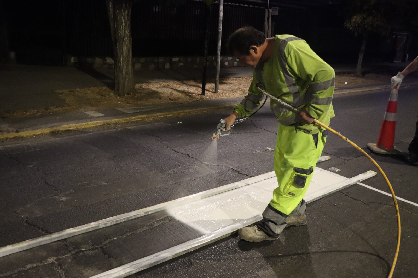 Durante los meses de enero y febrero, aprovechando la menor circulación vehicular propia de las vacaciones de verano, la Municipalidad de San Bernardo continúa desarrollando trabajos de pintado de señalética vial, pasos peatonales y resaltos en distintos sectores de la comuna, con miras al inicio del año escolar y al aumento en el flujo de estudiantes en las calles.