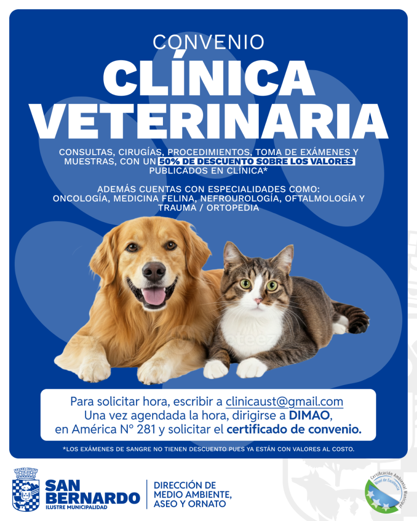 El proceso es simple. Primero debes solicitar una hora escribiendo al correo clinicaust@gmail.com. Luego, con la hora ya agendada, tienes que dirigirte a la Dirección de Medio Ambiente, Aseo y Ornato (DIMAO), ubicada en América N° 281, donde te entregarán un certificado que acredita el convenio. Ese documento es el que permite hacer efectivo el descuento.